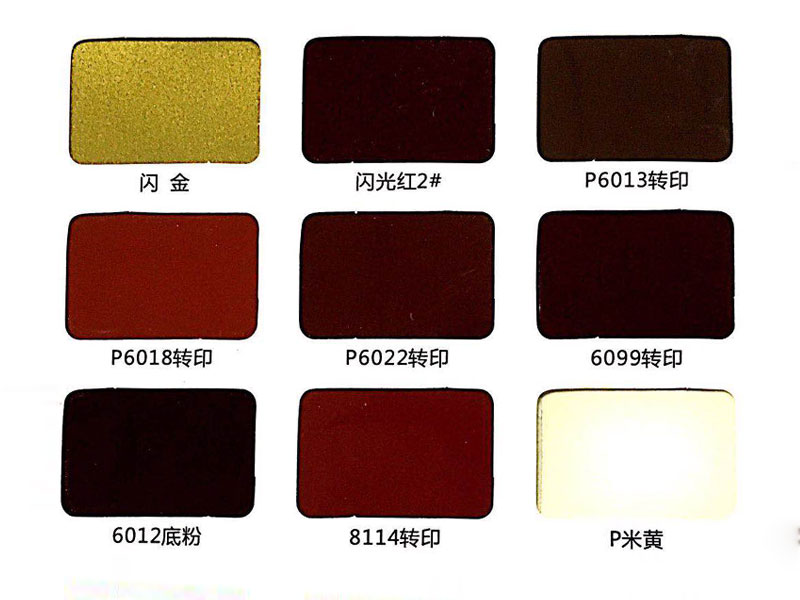 塑粉色卡是我公司主要生產(chǎn)的產(chǎn)品之一。產(chǎn)品具有**的流平性、附著力強、耐高溫、高光澤、美術(shù)立體感強等特點。主要產(chǎn)品有純聚酯型、純環(huán)氧型、混合型、金屬型、美術(shù)型等系列的高光、啞光、無光、磨砂、錘紋、大理石紋、仿銅系列、仿金屬漆系列等三十多個類型上千個色別的粉末涂料。